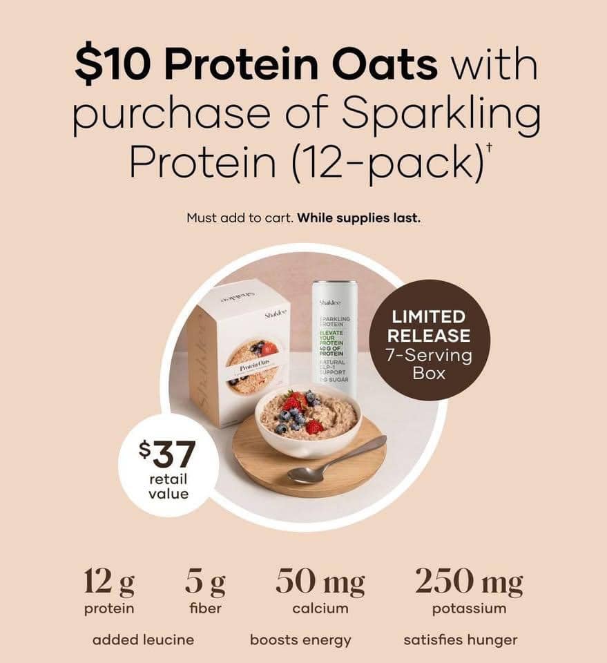 And guess what?! If you love the idea of starting your day (or fueling a busy one) with a quick and balanced meal, Protein Oats are AMAZING. And right now, you can grab them for only $10 with your purchase of Sparkling Protein—how great is that?!